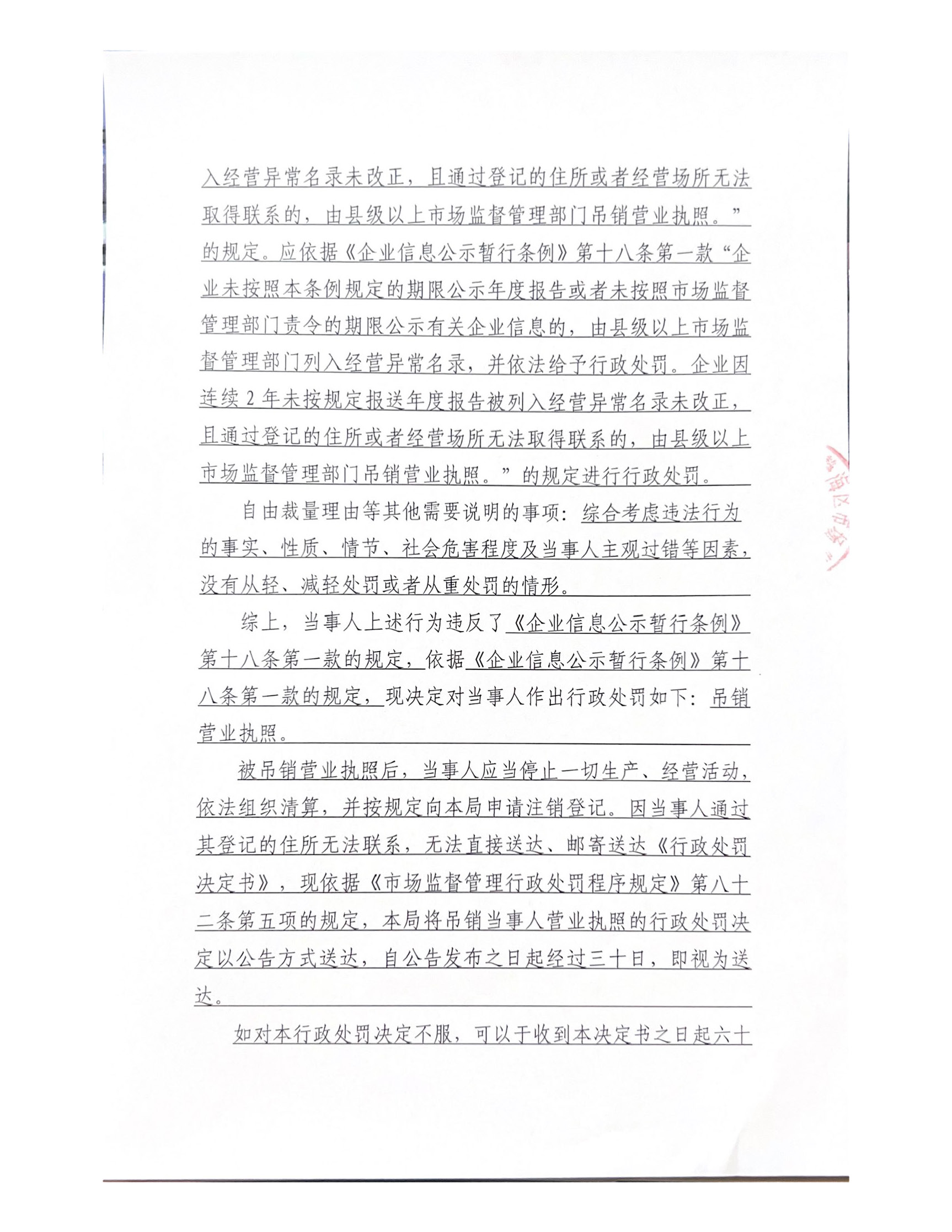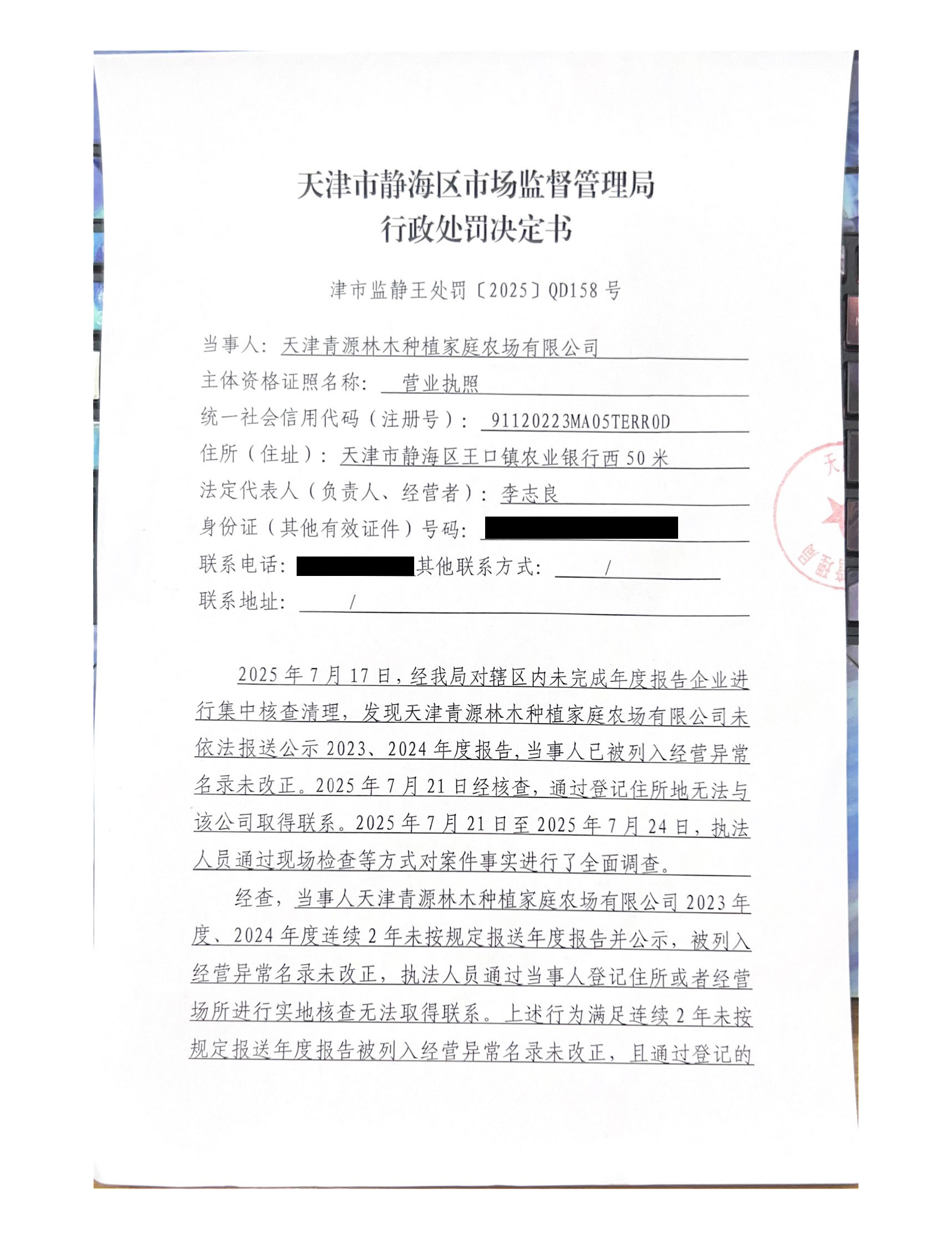 关于天津青源林木种植家庭农场有限公司的吊销行政处罚决定书公告