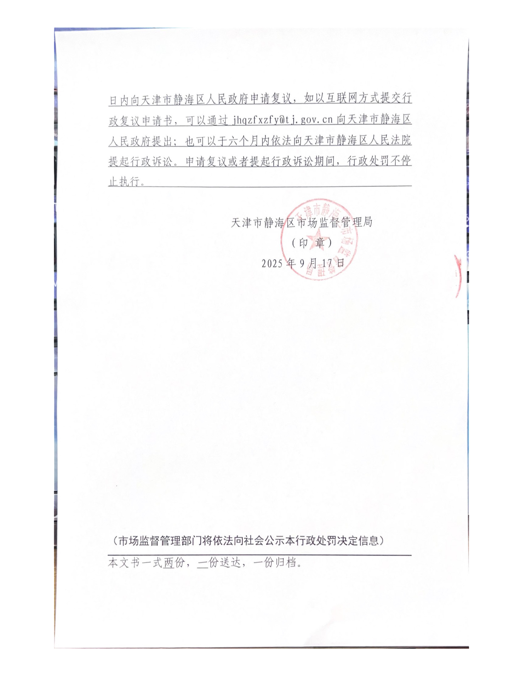 来源:天津市静海区市场监督管理局 发布日期:2025-09-17 09:00