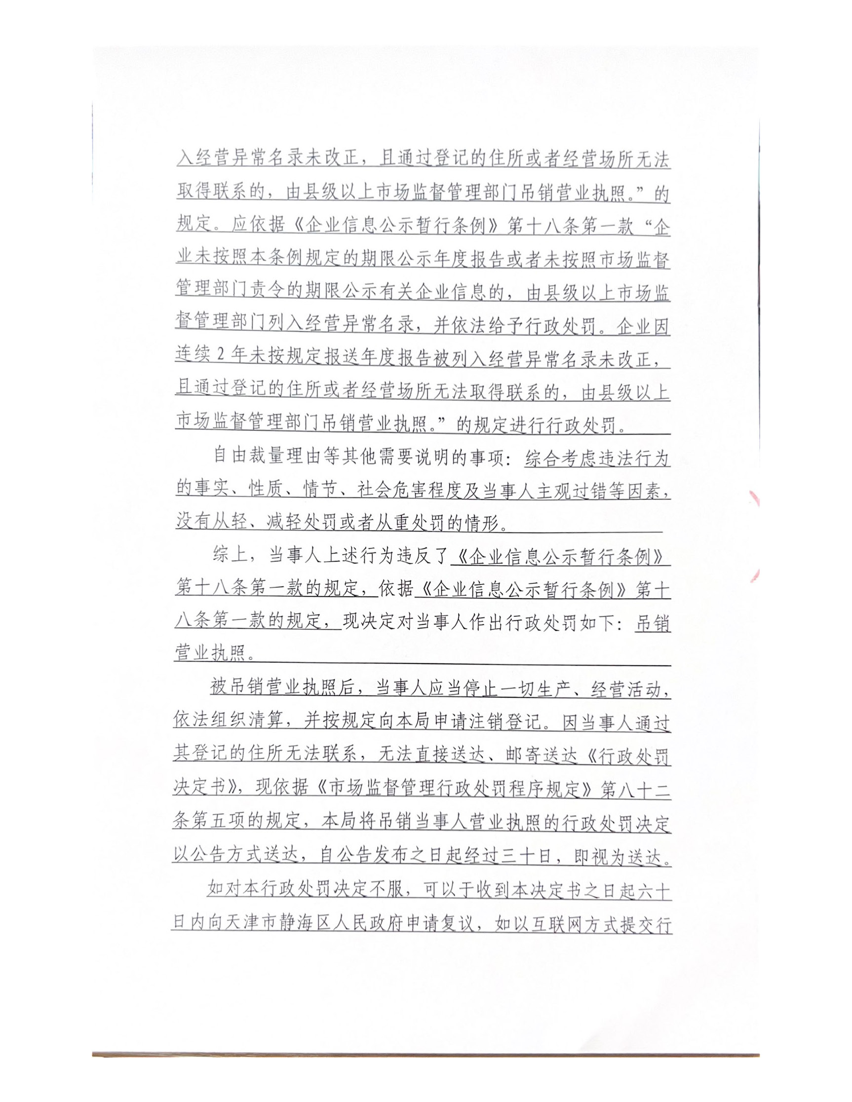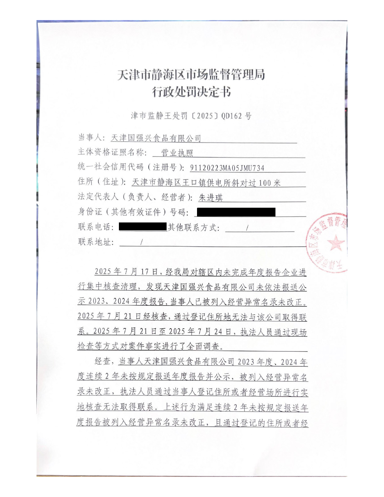 关于天津国强兴食品有限公司的吊销行政处罚决定书公告