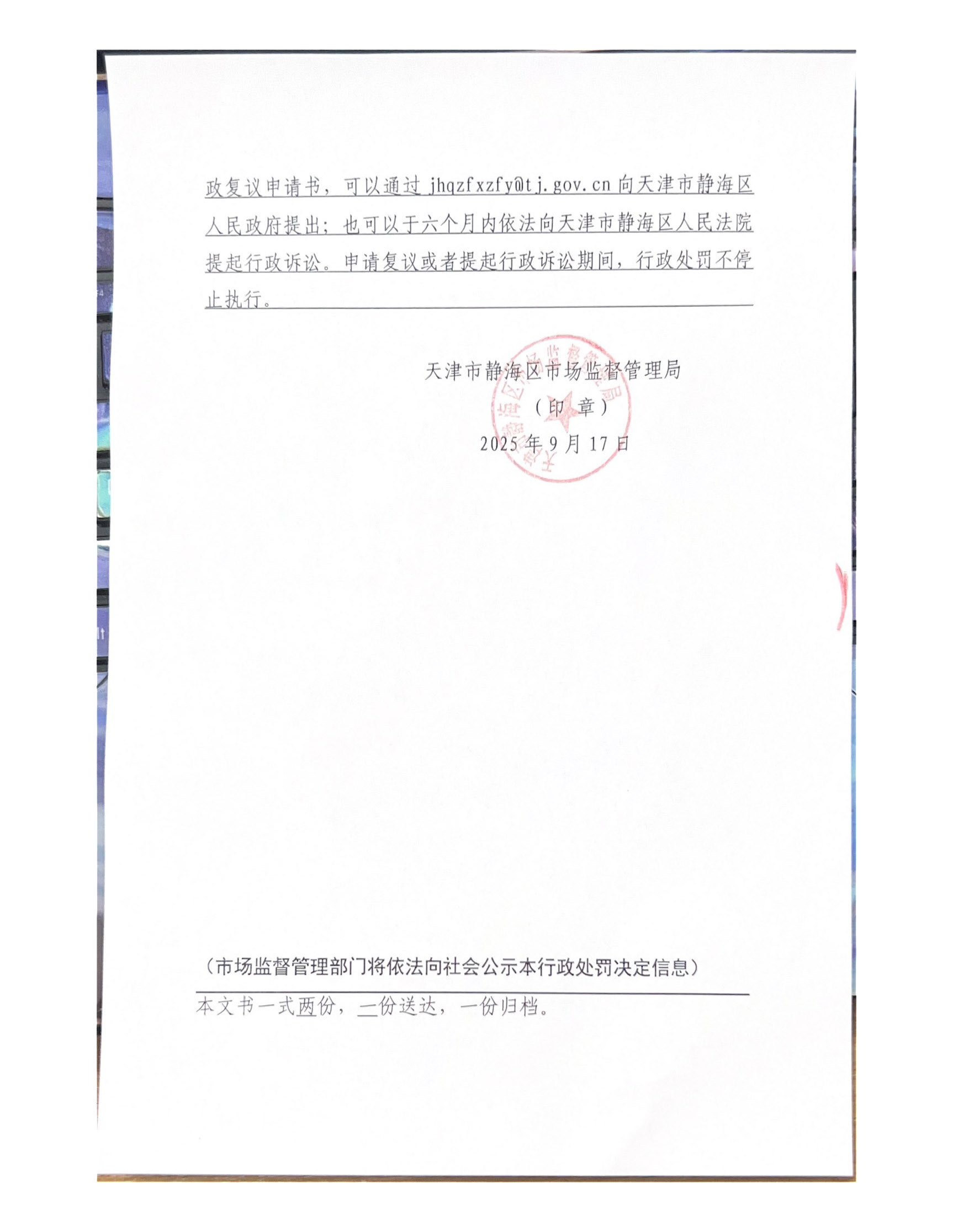 来源:天津市静海区市场监督管理局 发布日期:2025-09-17 09:00