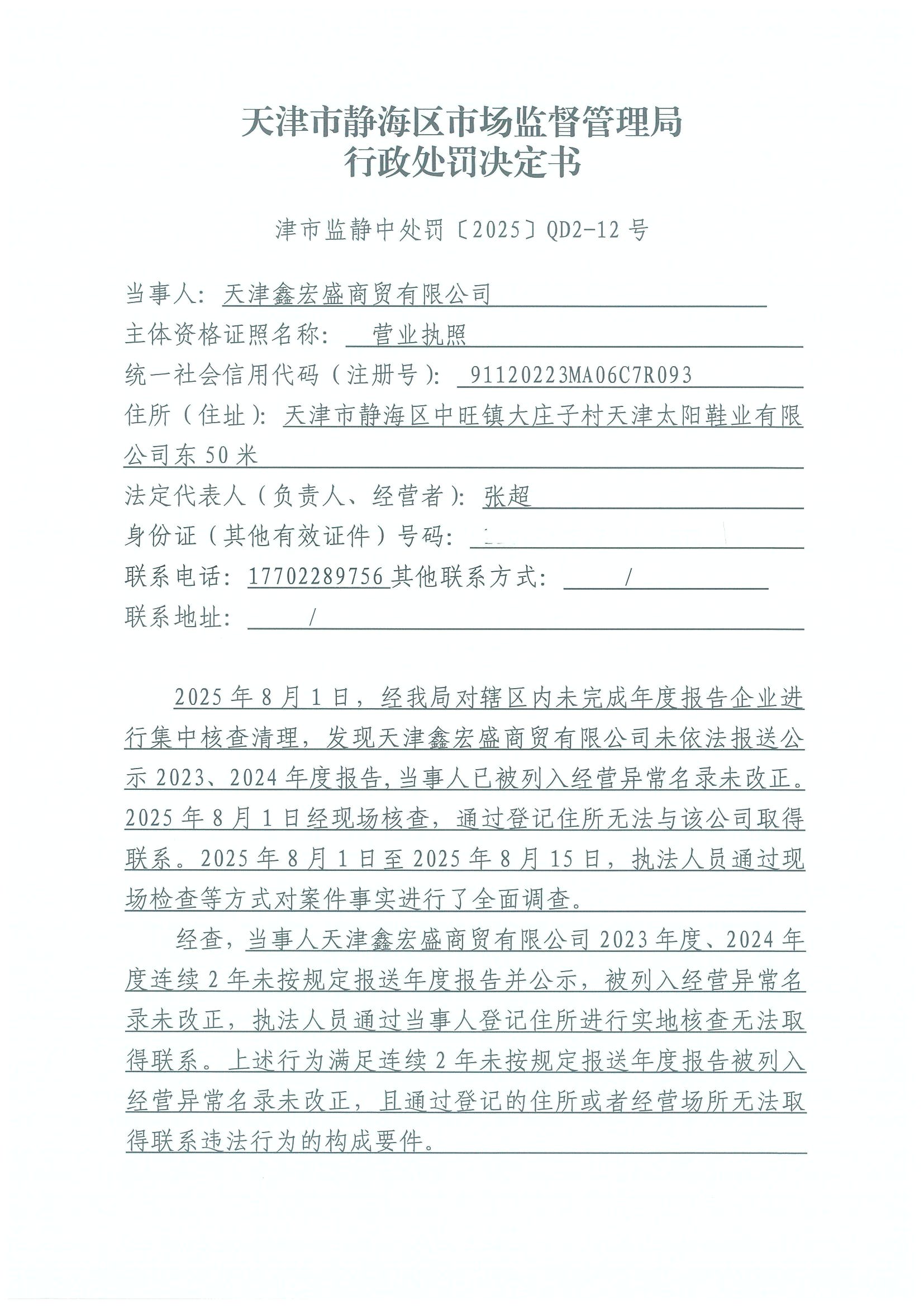 关于天津鑫宏盛商贸有限公司吊销决定公告