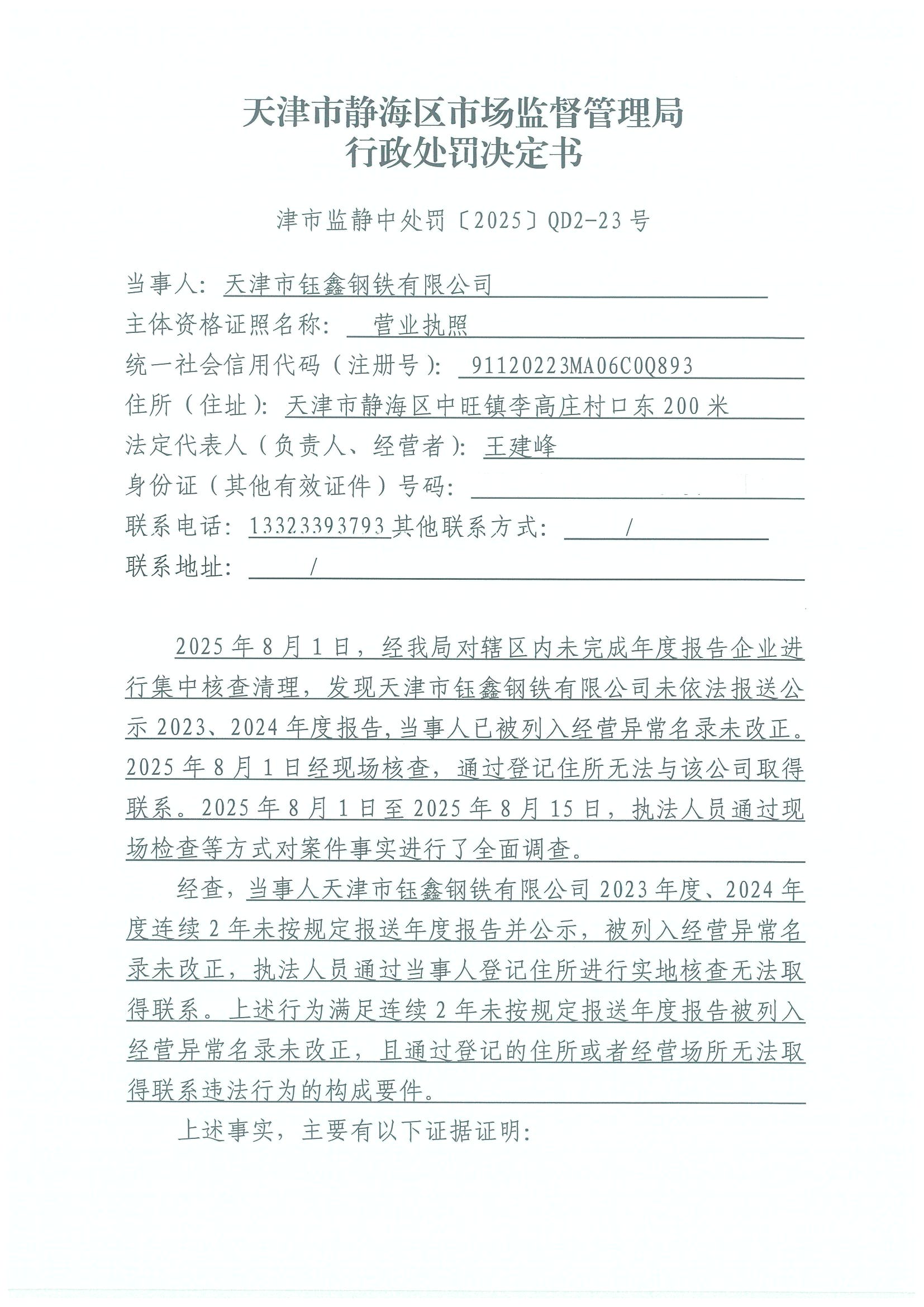 关于天津市钰鑫钢铁有限公司吊销决定公告