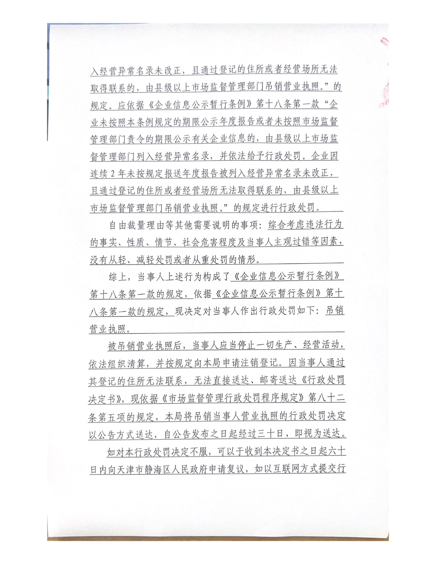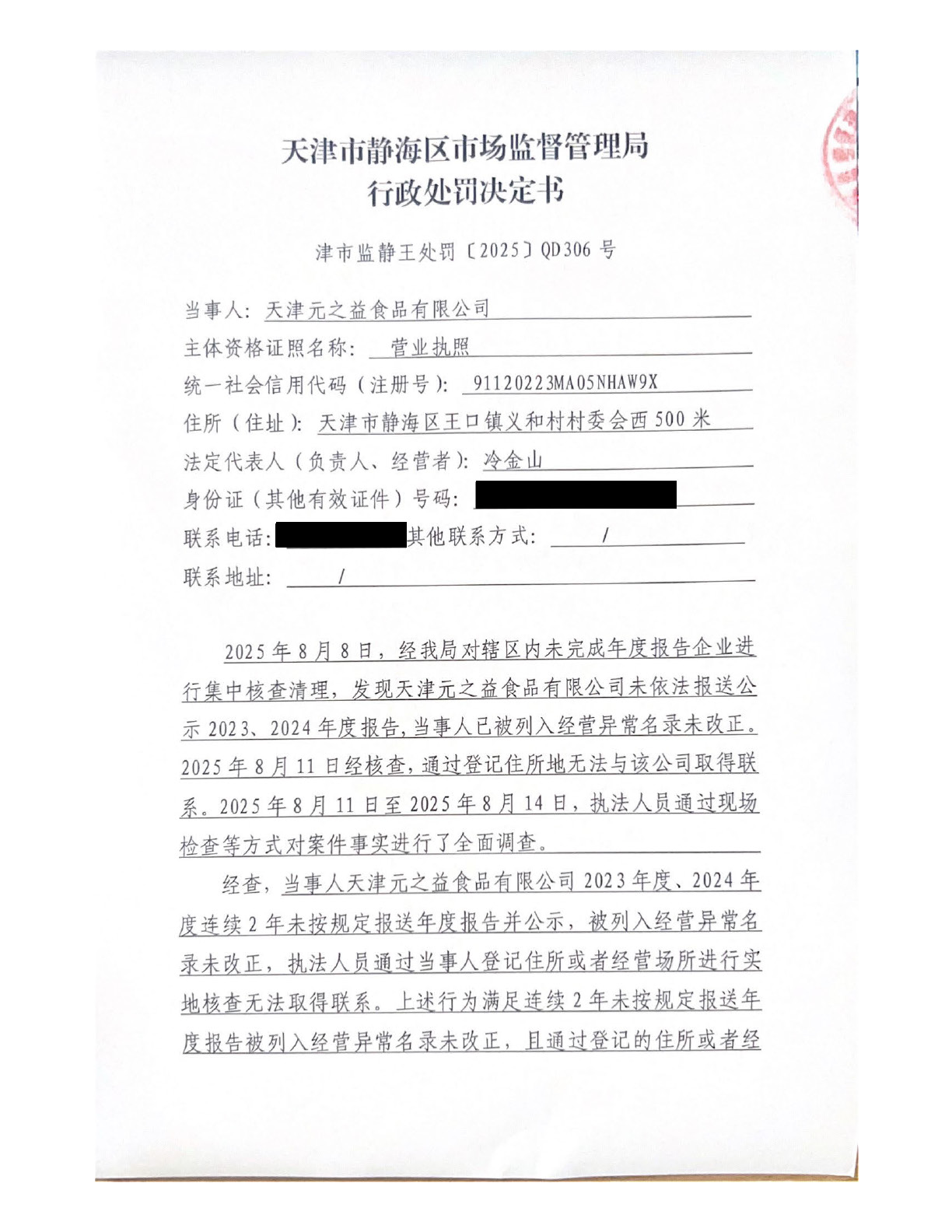 关于天津元之益食品有限公司的吊销行政处罚决定书公告