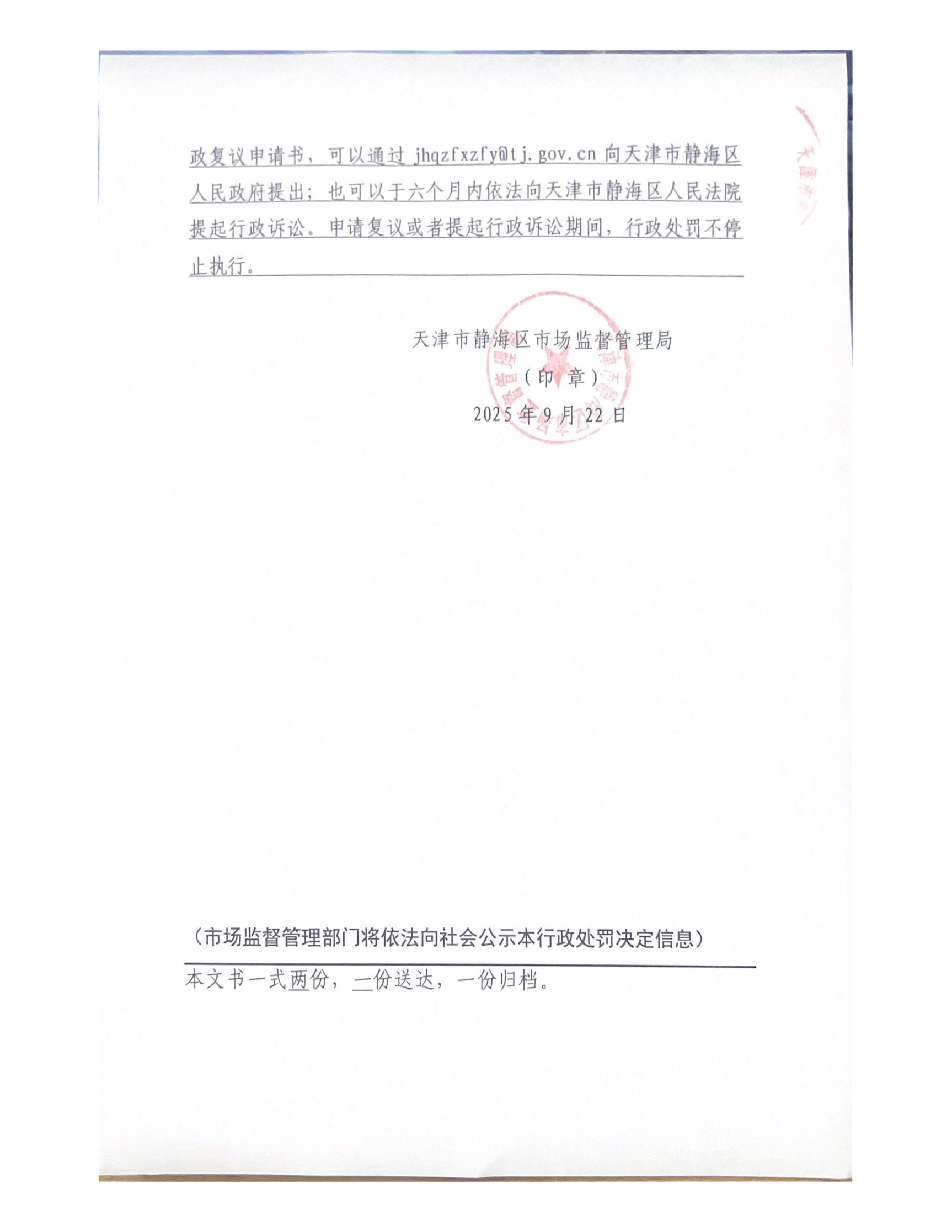 来源:天津市静海区市场监督管理局 发布日期:2025-09-22 09:00
