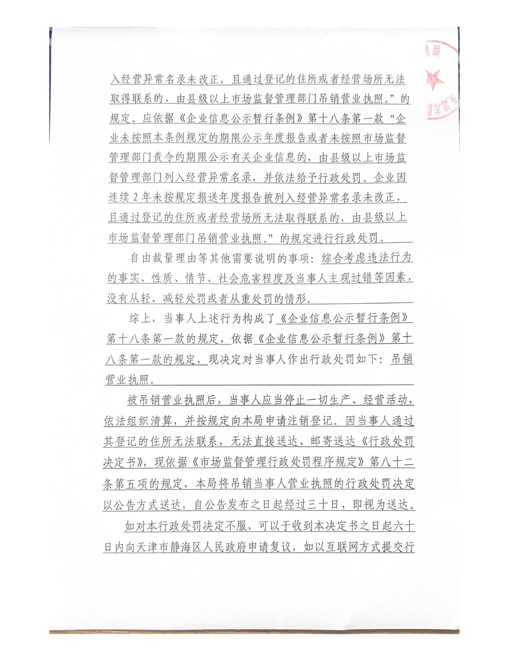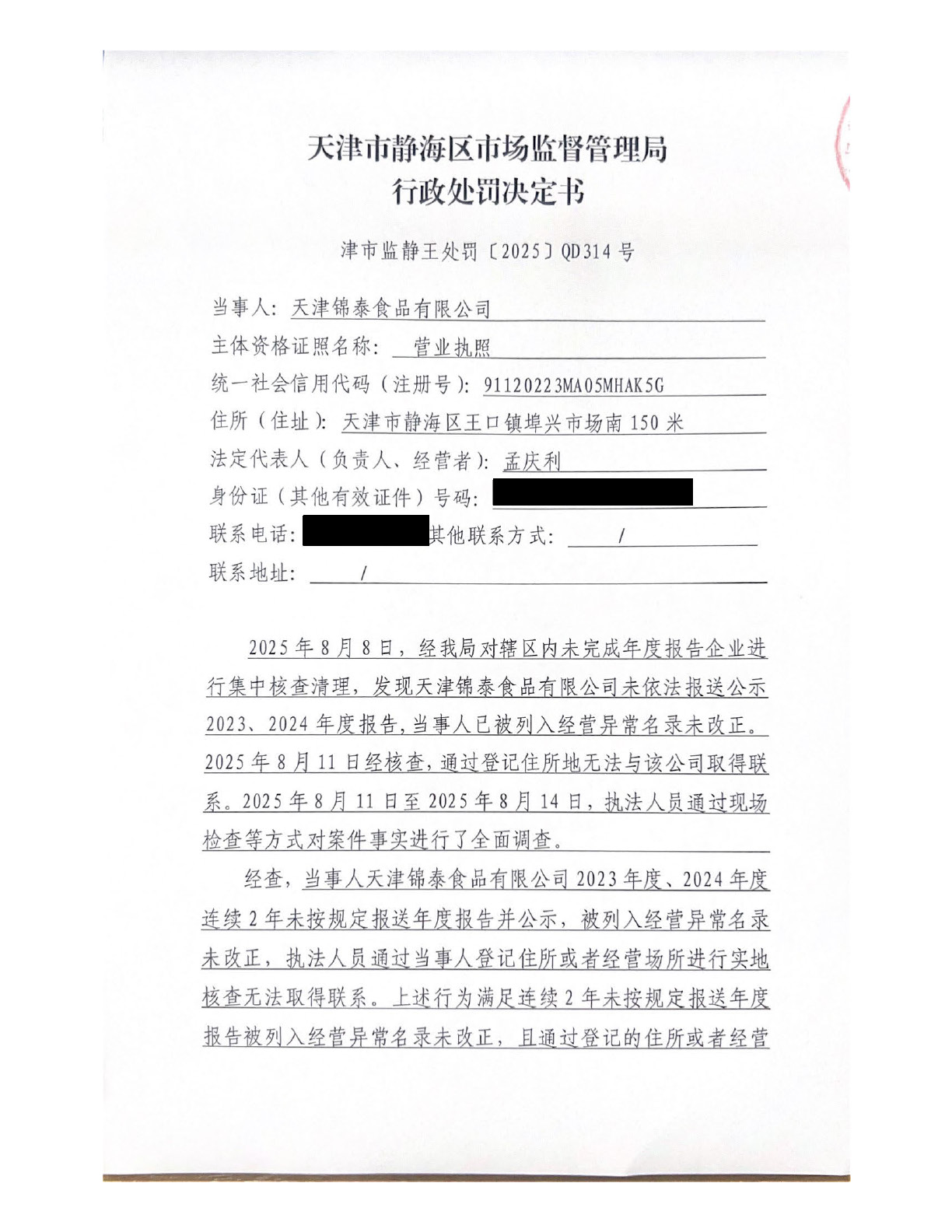 关于天津锦泰食品有限公司的吊销行政处罚决定书公告