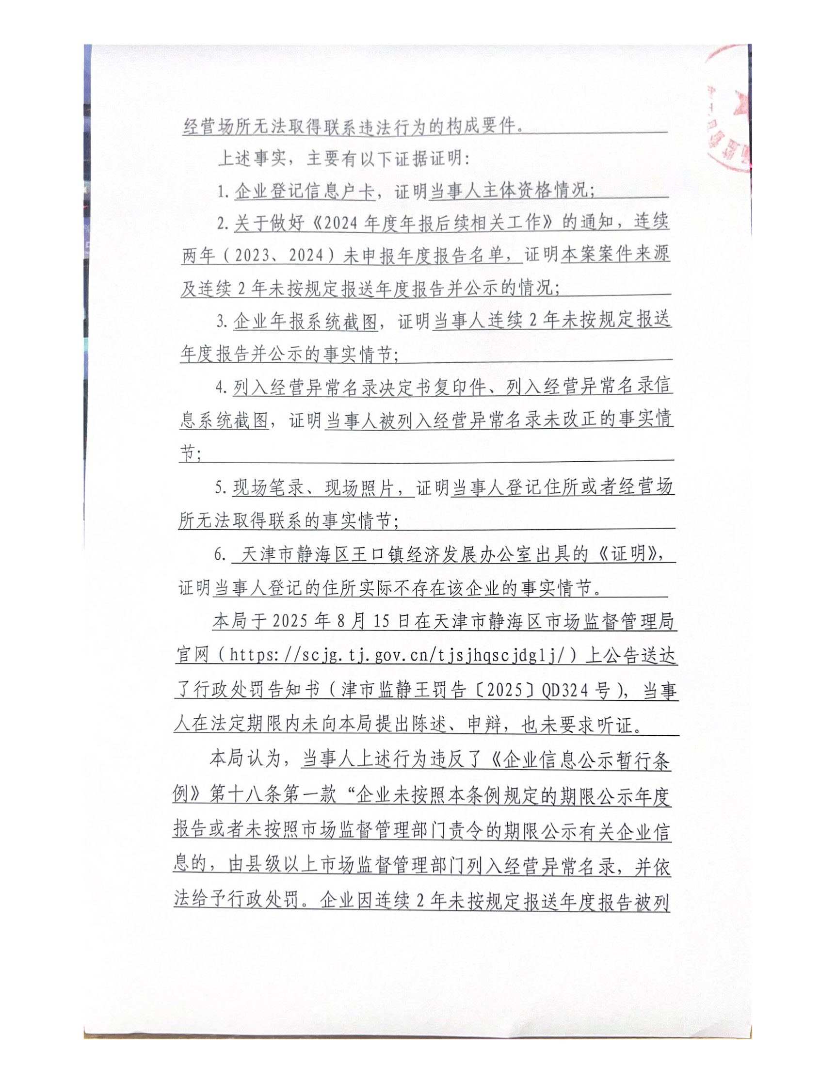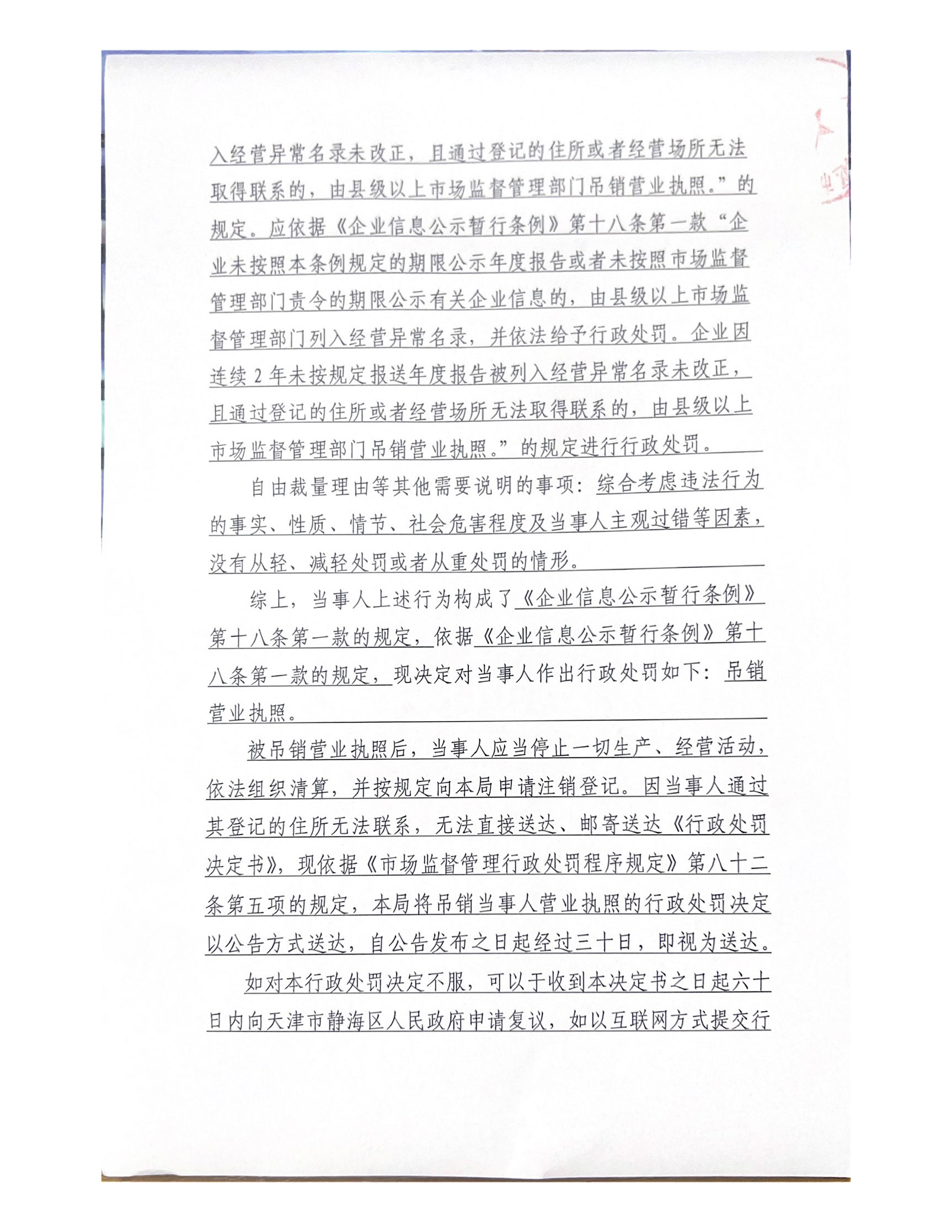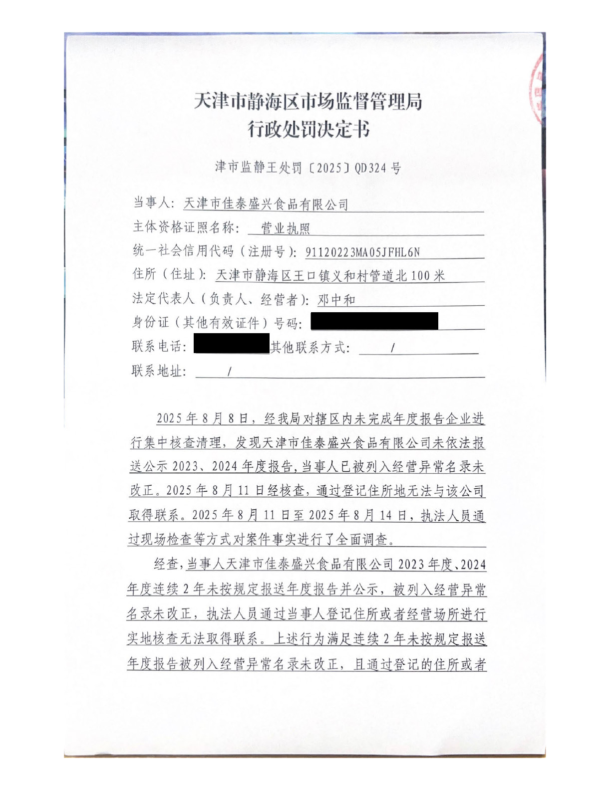关于天津市佳泰盛兴食品有限公司的吊销行政处罚决定书公告