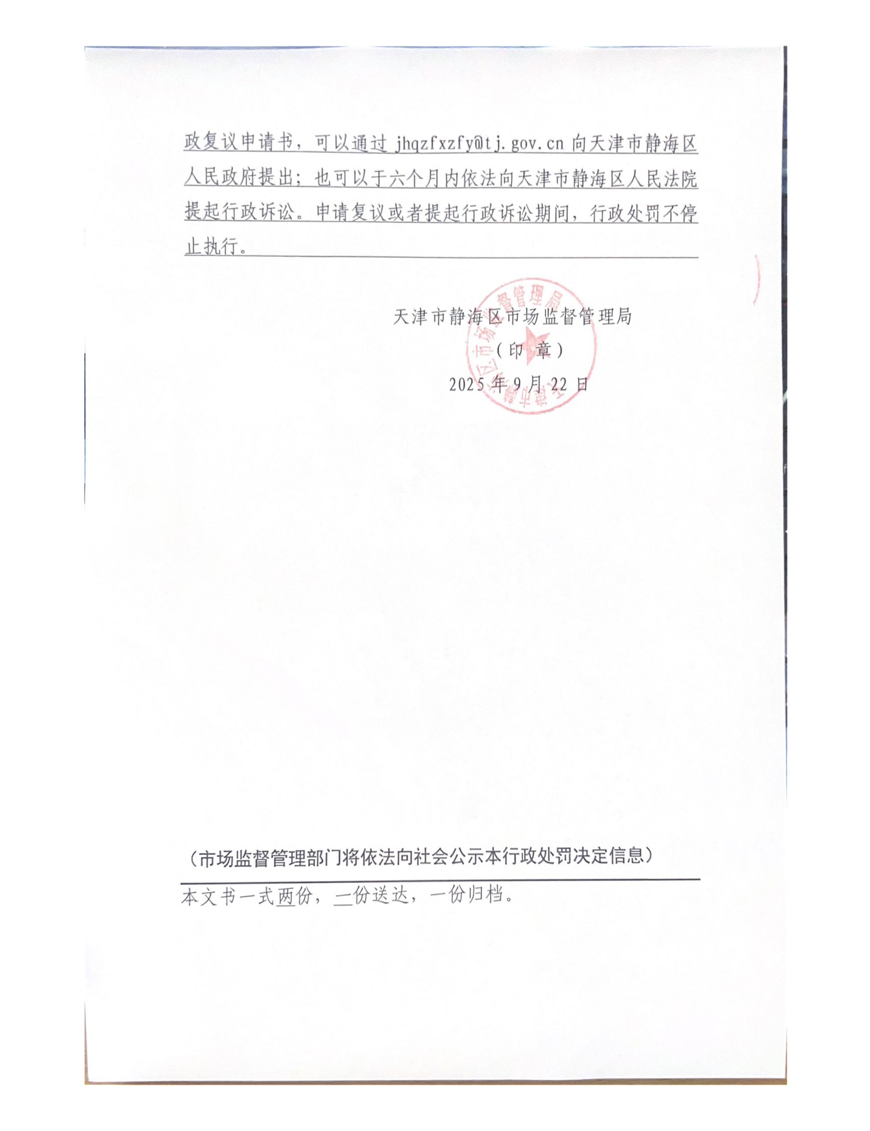 来源:天津市静海区市场监督管理局 发布日期:2025-09-22 09:00