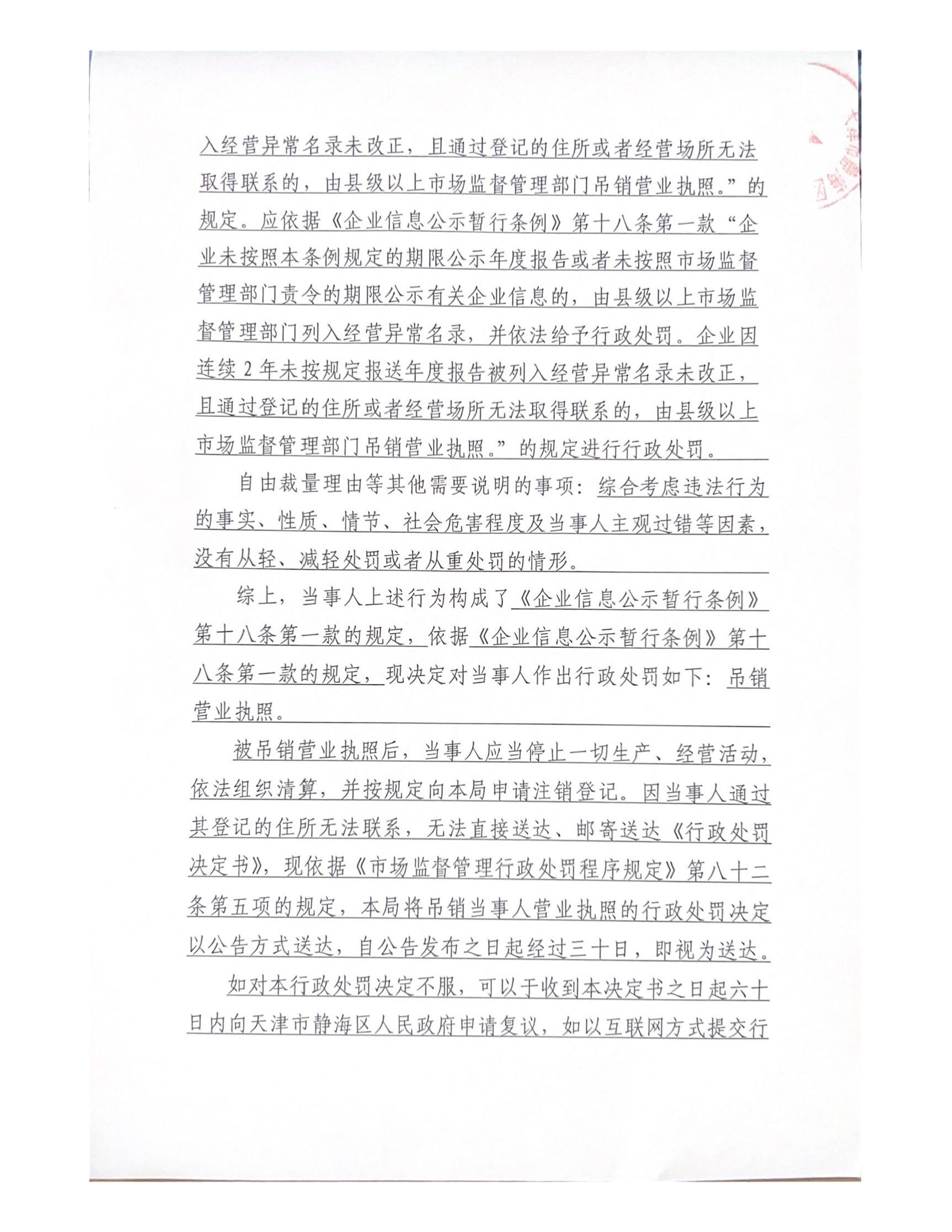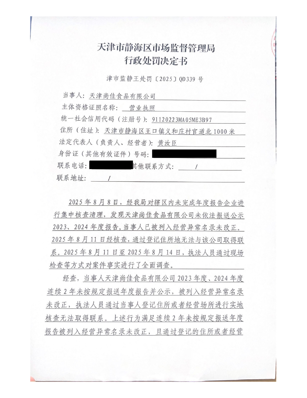 关于天津尚佳食品有限公司的吊销行政处罚决定书公告