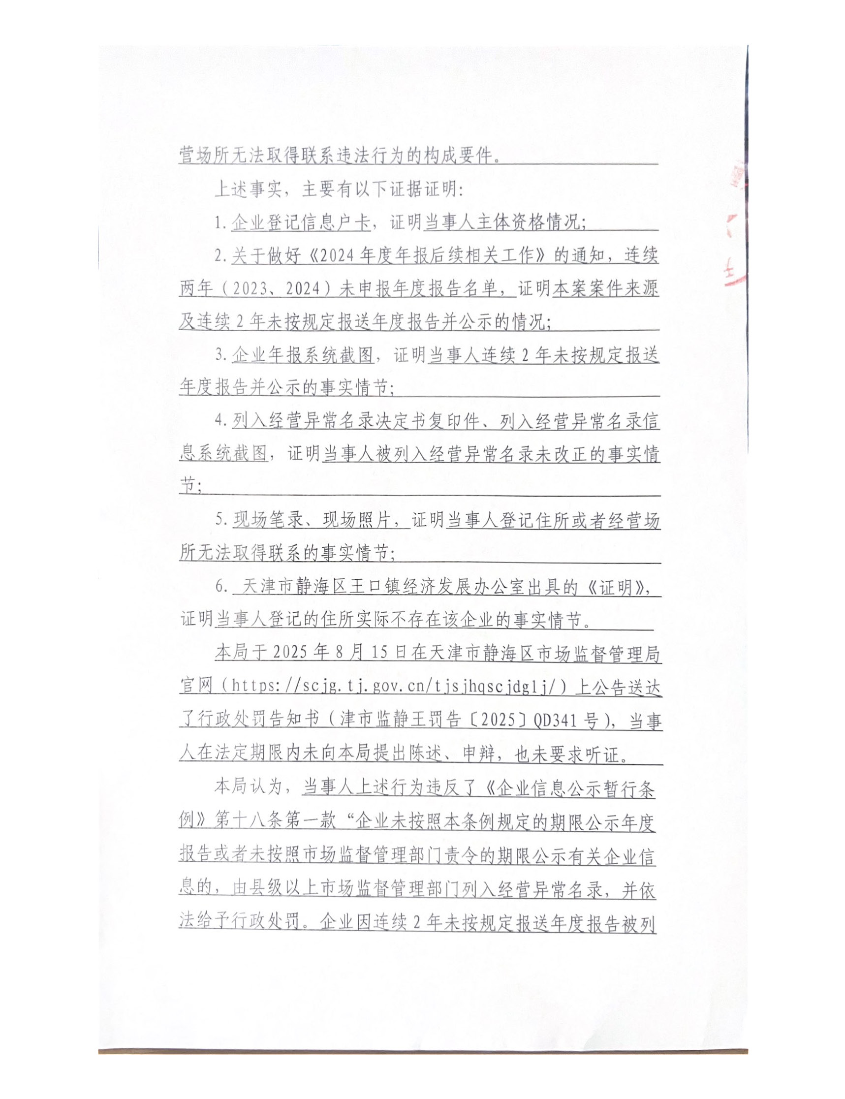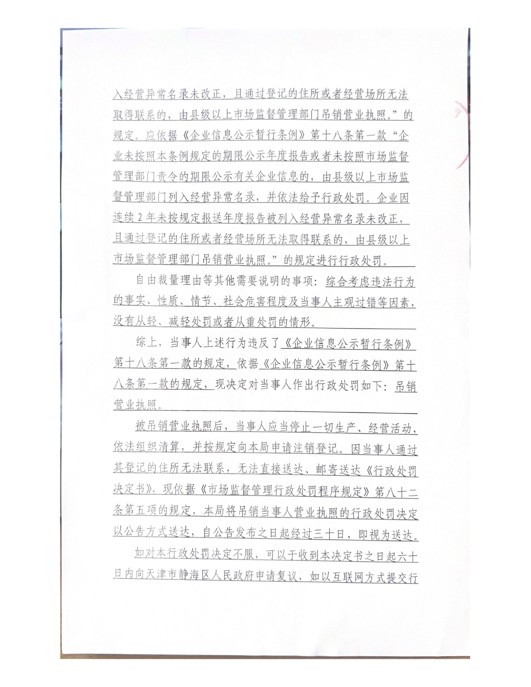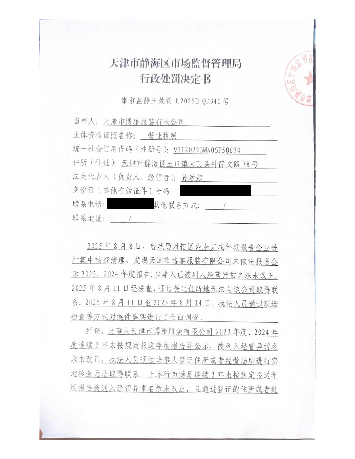 关于天津市博雅服装有限公司的吊销行政处罚决定书公告