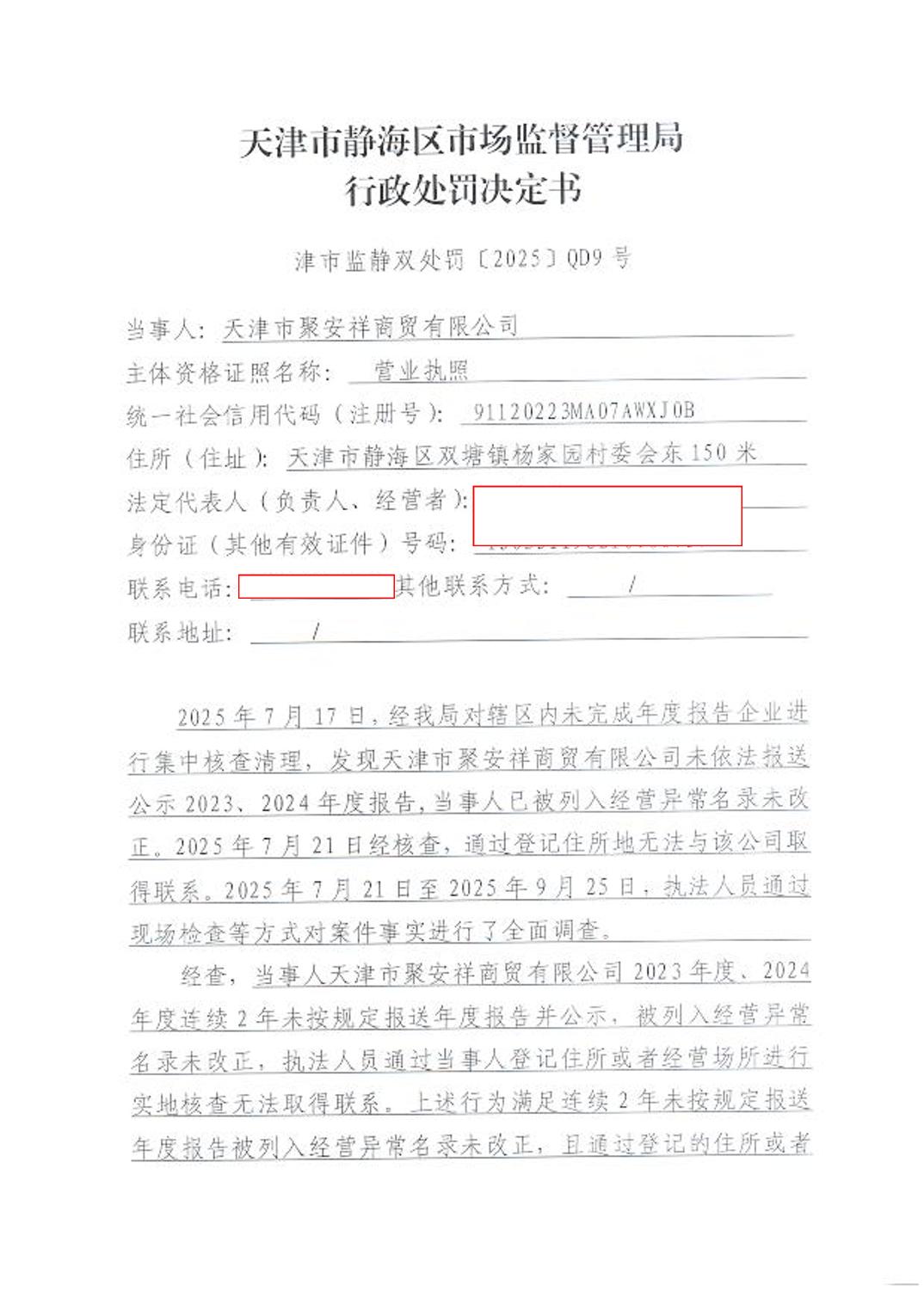 关于天津市聚安祥商贸有限公司的吊销行政处罚决定书公告