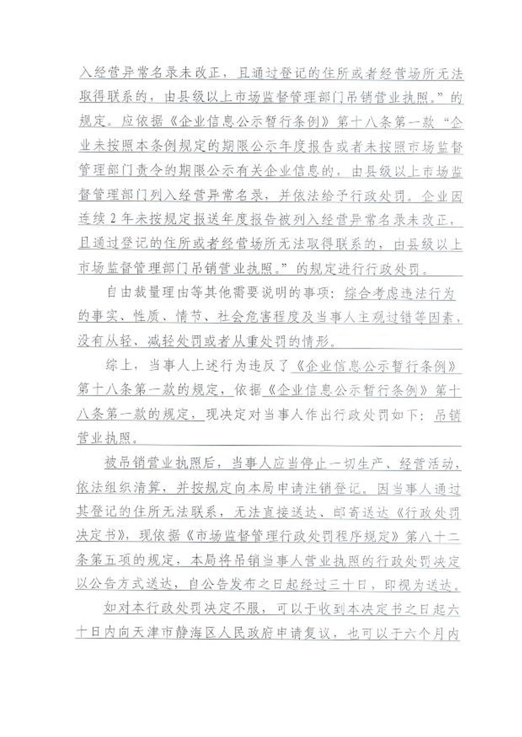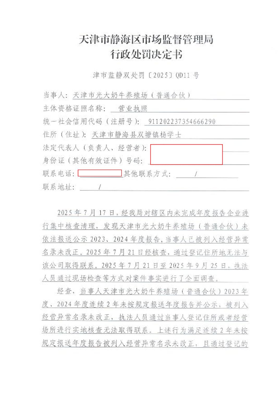 关于天津市光大奶牛养殖场(普通合伙)的吊销行政处罚决定书公告