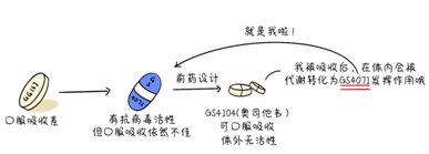 吉利德公司成立了以比朔夫贝格尔为组长的研发小组,经过了反复失败以及多学科的综合研究,得到化合物可口服吸收的GS4104(经过体内代谢反应产生化合物GS4071,发挥抗病毒作用),GS4104在小鼠、大鼠、猴和雪貂身上均取得了预期的效果。接下来,就是进行临床试验了。由于临床实验耗时长、投入经费较多,无力承担高昂临床试验费用的吉利德只得将药物使用权转让给了罗氏制药。